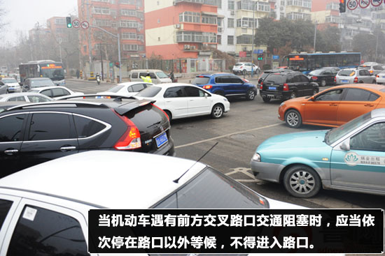 交警建议驾驶员,当前车已停在路口二分之一处时,即使是绿灯,后车也应在路口外等候,不要驶入路口。而当前车尚在路口三分之一内缓慢行驶时,后车则可缓慢前行。在遇到路口有黄色网格线时,要做好“预估”工作,当前方有车辆停驶或已经缓慢行驶了,后方车辆就应该在线外等候,直到确认黄色网格线前方有足够空间停驶本车时,方可驶过黄色网格线。