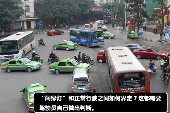 的确,在目前的相关规定中,并没有明确表示哪一种情况是“前方路口堵塞”。那么,“闯绿灯”和正常行驶之间如何界定?这都需要驾驶员自己做出判断,而这个判断是否正确,却没有一个死的标准,那么驾驶员一旦判断失误,“闯绿灯”便无法避免。