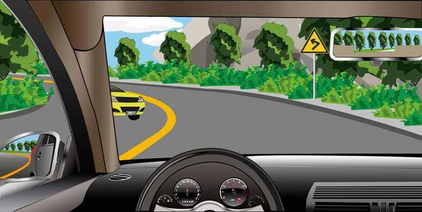 如图所示,驾驶机动车遇弯道会车时,以下做法正确的是什么?